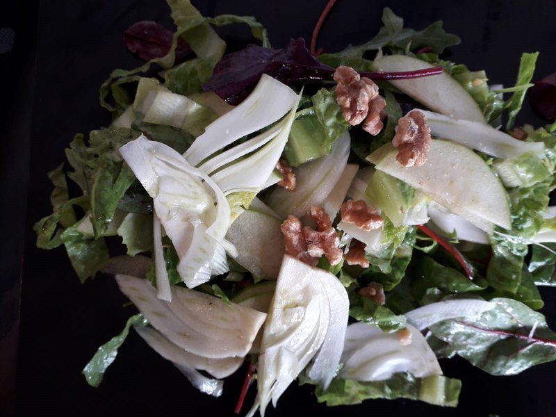 שומר.עלי בייבי.לבבות חסה.תפוחי עץ. ופקאן מסוכר ברוטב ויניגרט.